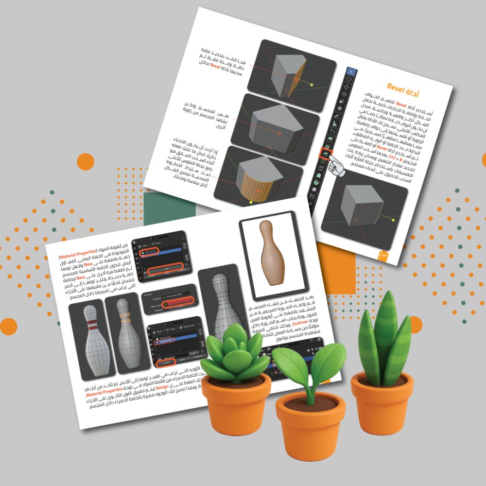 صُمِّم الكتاب ليكون دليل عملي متدرج للدخول إلى عالم التصميم الثلاثي الأبعاد باستخدام Blender دون افتراض خبرة سابقة، يبدأ بمقدمة تمهيدية توضّح مفهوم التصميم الثلاثي الأبعاد ومجالات استخدامه وأسباب اختيار برنامج بلندر، ثم ينتقل إلى شرح المراحل الأساسية للعمل بدءًا من تثبيت البرنامج والتعرّف على الواجهة وأدوات التحريك وتغييرالأحجام والتدوير والحفظ، ثم يتعمّق في فصل النمذجة بشرح دقيق لمكونات المجسم وأوضاع التحرير وأدوات التشكيل المختلفة مع تطبيقات عملية مثل إنشاء المصابيح والإطارات والدرج والتحويل من الفيكتور إلى مجسمات ثلاثية الأبعاد وإصلاح النماذج، بعد ذلك يخصص فصلًا متكاملًا للخامات يشرح فيه التعامل مع الألوان والمواد الواقعية كالذهب والزجاج والخشب والمعادن، مع إعداد استوديو بسيط واستخدام الكاميرا والإضاءة لاختبار النتائج، ثم ينتقل إلى المحاكاة الفيزيائية موضح محاكاة الأجسام الصلبة والقماش والسوائل وتأثيرات الرياح، ويختتم بشرح الإضاءة وأنواعها وتطبيق عملي متكامل يجمع ما سبق، إضافة إلى فصل خاص بالاختصارات والنصائح المهمة التي ترفع كفاءة العمل وتختصر الوقت، ليكون هذا الكتاب مرجع واضح ومنظم لكل مصمم يرغب في بناء أساس صحيح وقابل للتطوير في التصميم الثلاثي الأبعاد.